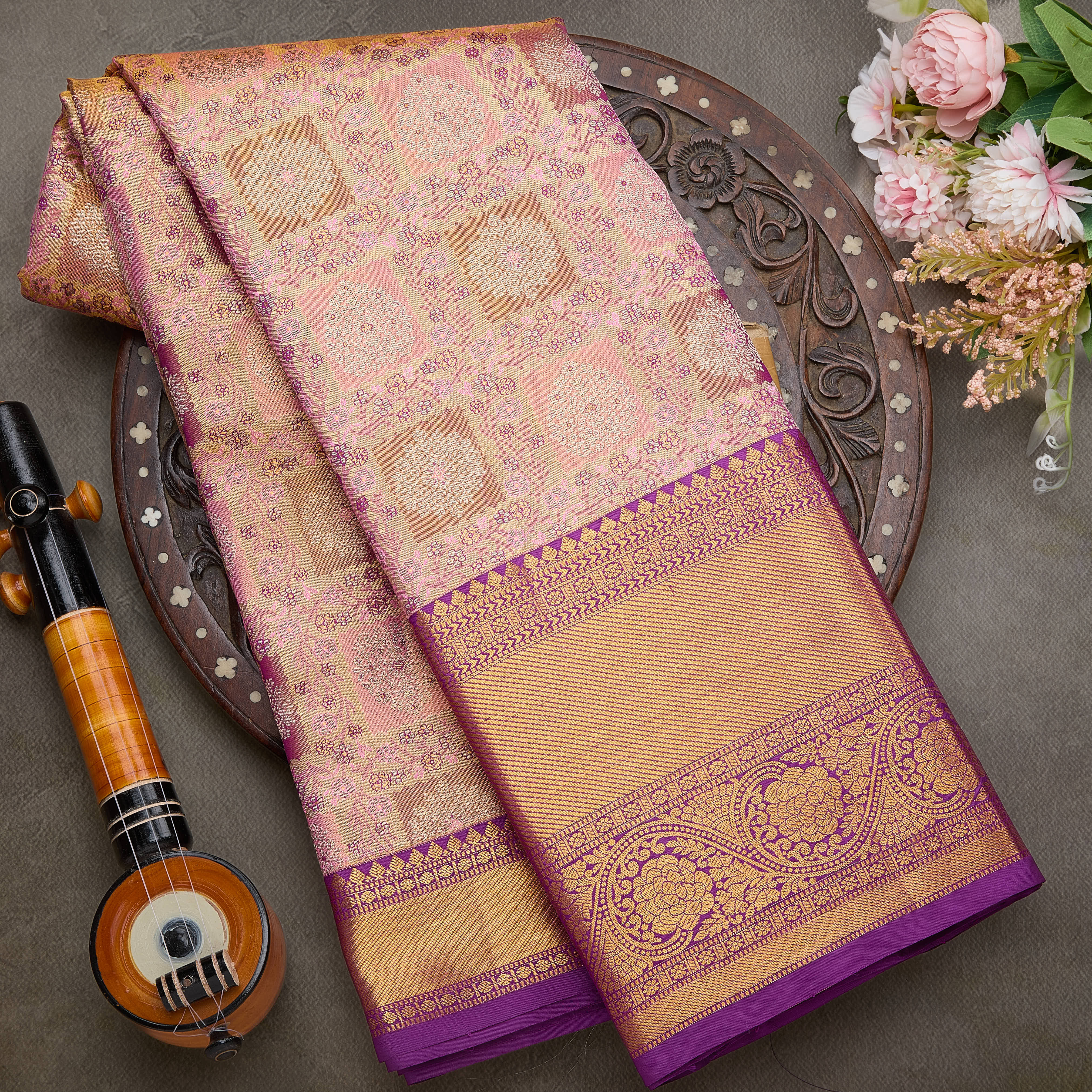 Luxurious bridal Kanjivaram silk sarees or opulent wedding events.